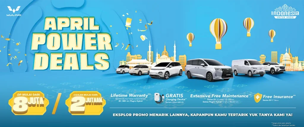 Sambut bulan April dengan langkah baru bersama Wuling melalui program spesial “April Power Deals”. Ini adalah moment yang tepat untuk menghadirkan kendaraan yang mampu menunjang mobilitas Anda dengan lebih nyaman, aman, dan efisien.